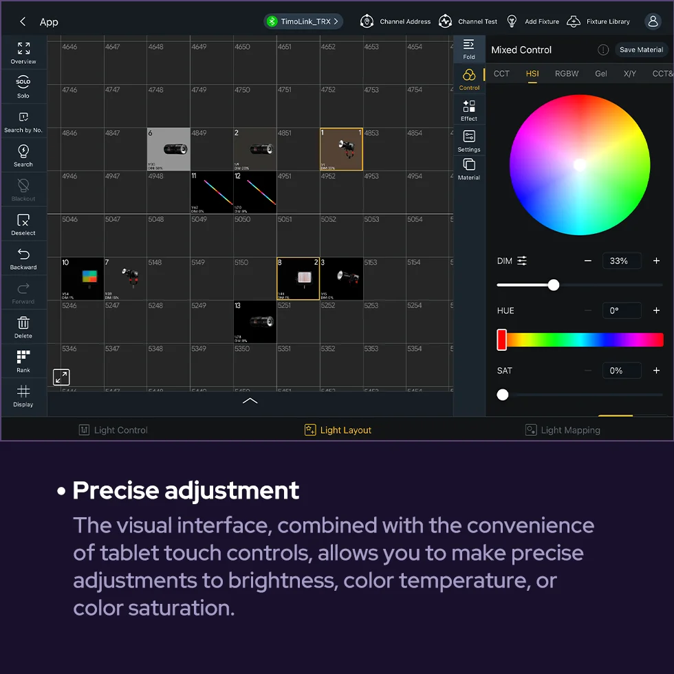 With the Godox KNOWLED app, you can easily position fixtures on the grid to match your on-set lighting setup. This provides a crystal-clear view of all fixture positions and statuses, making it highly intuitive. It streamlines your creative work and boosts efficiency.